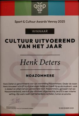 Voor mijn voorstelling "Naozommere 2025" mocht ik aan het einde van 2025 in Venray de Cultuurprijs 'Cultuur Uitvoerend' in ontvangst nemen.